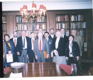 FABS Annual Meeting, April 15, 1999 at the Grolier Club. Left to right: Larry Siegler, Mary Schlosser, Steven Rothman, John McClatchey, Arthur Cheslock, Eric Holzenberg, Jerry Cole, Mark Samuels Lasner, Scott Vile, Carol Grossman, Bruce McKittrick, Florence Shay, Robert H. Jackson.